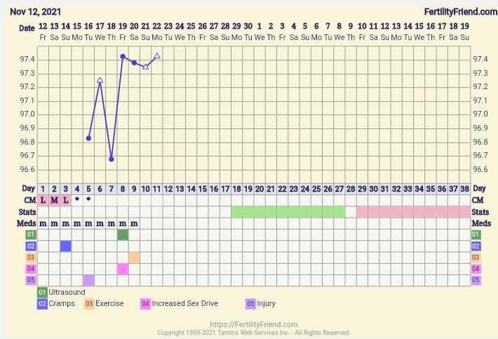 R/R: Today has been bonkers at work, sorry for the later check-in. I finished my 5K this weekend! Only had to walk one small stretch, so I'll consider it a win. I'm getting a little stressed about getting good timing this week with the holidays, travel, and visiting family. Hopefully we'll come out the other side with at least a decent chance this month.