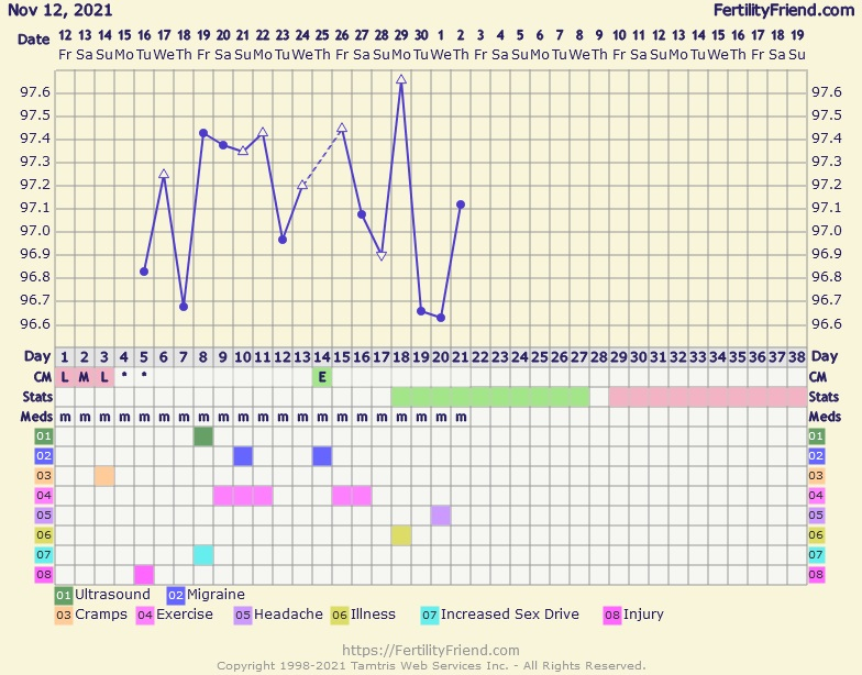 CS/Q: Go figure the one month I don't bother with opks is the month that my cycle doesn't have a super obvious CD20 O. My husband ended up working later than expected yesterday but is off today, so maybe we'll get a go in after all? I've decided that since we're doing a medicated cycle next cycle, I'm going to just leave or take this cycle and give myself a breakish from detailed tracking. If we get it in awesome, but if not no big deal.