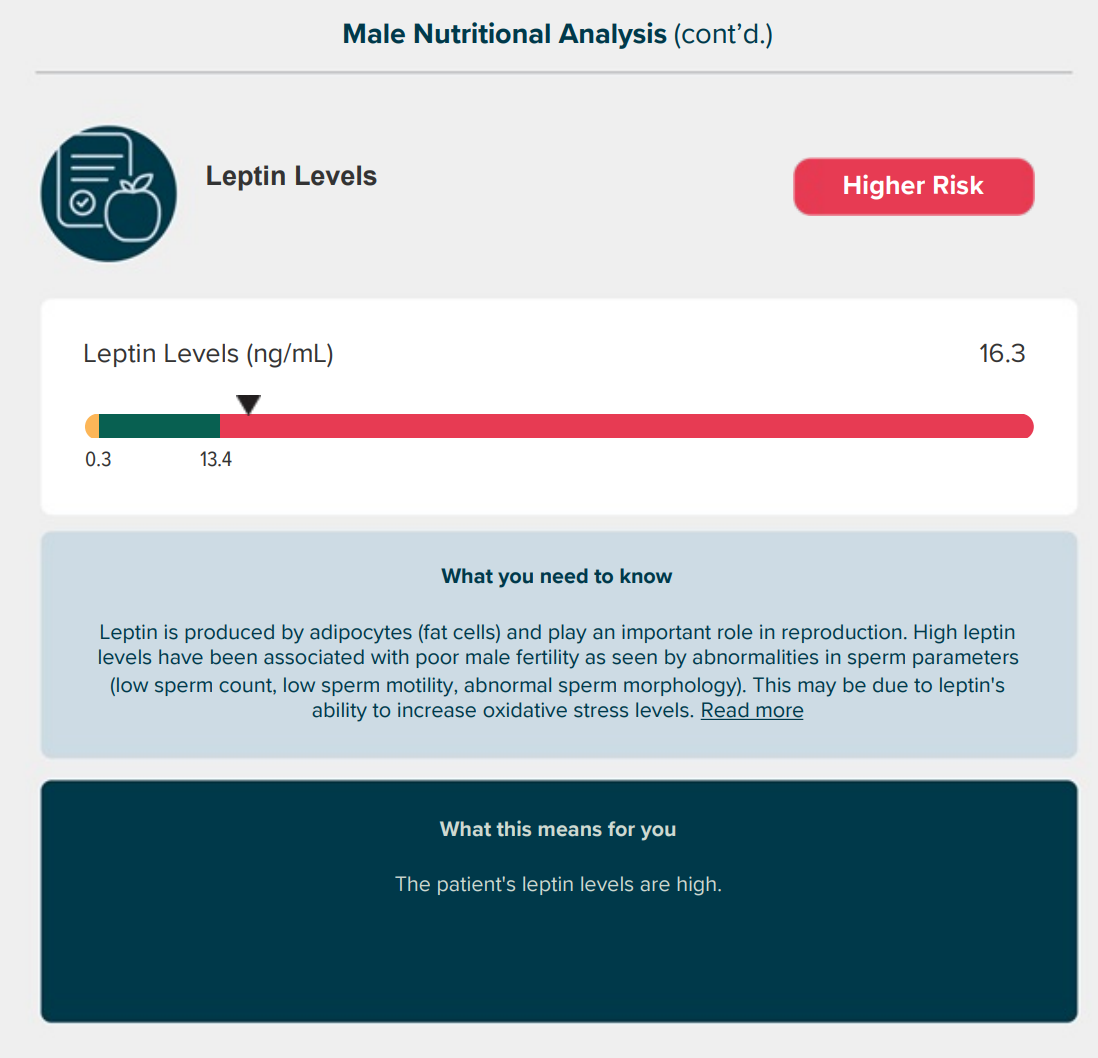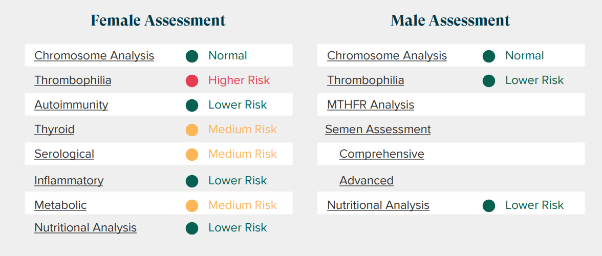 Then we get to our individual profiles. Of course, MH is a picture of perfect health (semen analysis wasn't part of this report btw; we already had both the DNA sperm frag test done separately and his semen analyses have varied, but have mostly been good since taking all the vitamins.