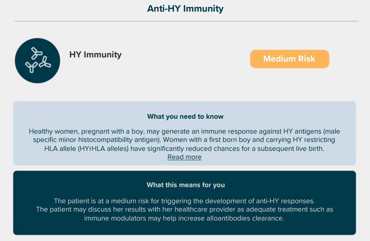 - Anti HY Immunity means that we'll be transferring our female embryos first, since if I generate an immune response against HY antigens would mean significantly lowered chances of subsequent live births.