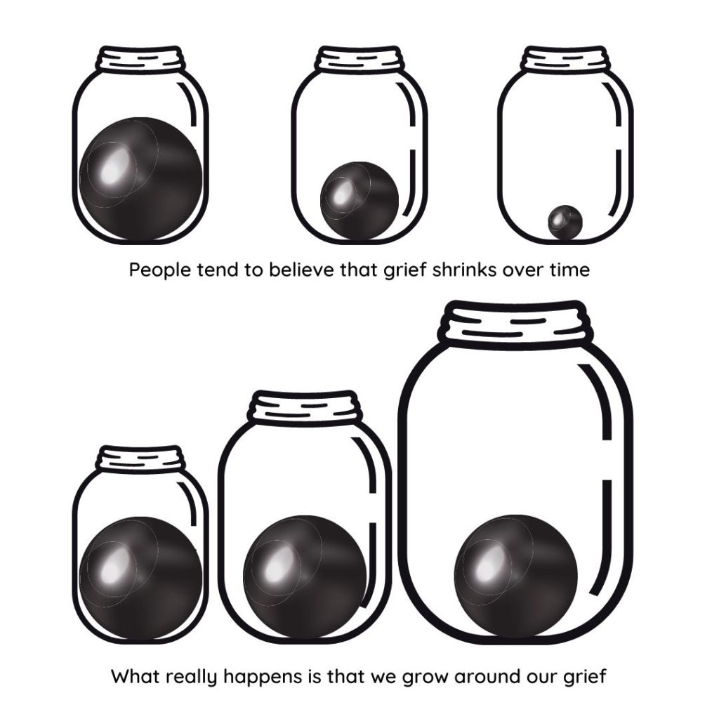 @anniemarie887 Yes I've seen something that before, and it's sooo accurate. I definitely don't feel like the grief has gotten smaller but just that I've grown around it.