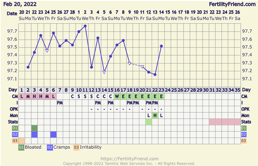 CS/Q: finally saw a temp shift today. Hoping that means I O’d and my OPK missed it.@ejoseph16 AF *just* arrived. I'm sending you all the good juju that O happened with that spike!!! Hurry up already!