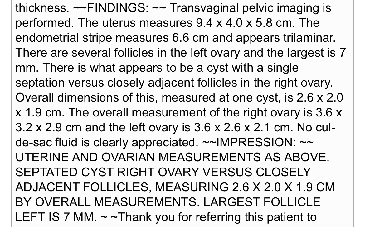 @gingermama29 Are you expecting the lab results today? If it's a cyst, will you just be medicating longer before the trigger?