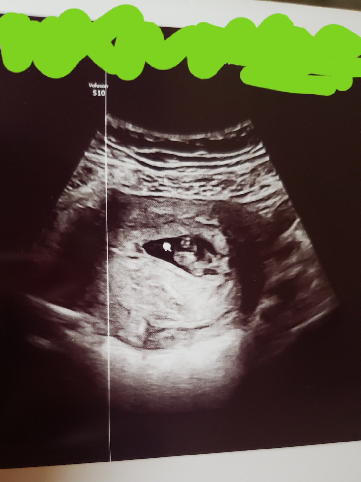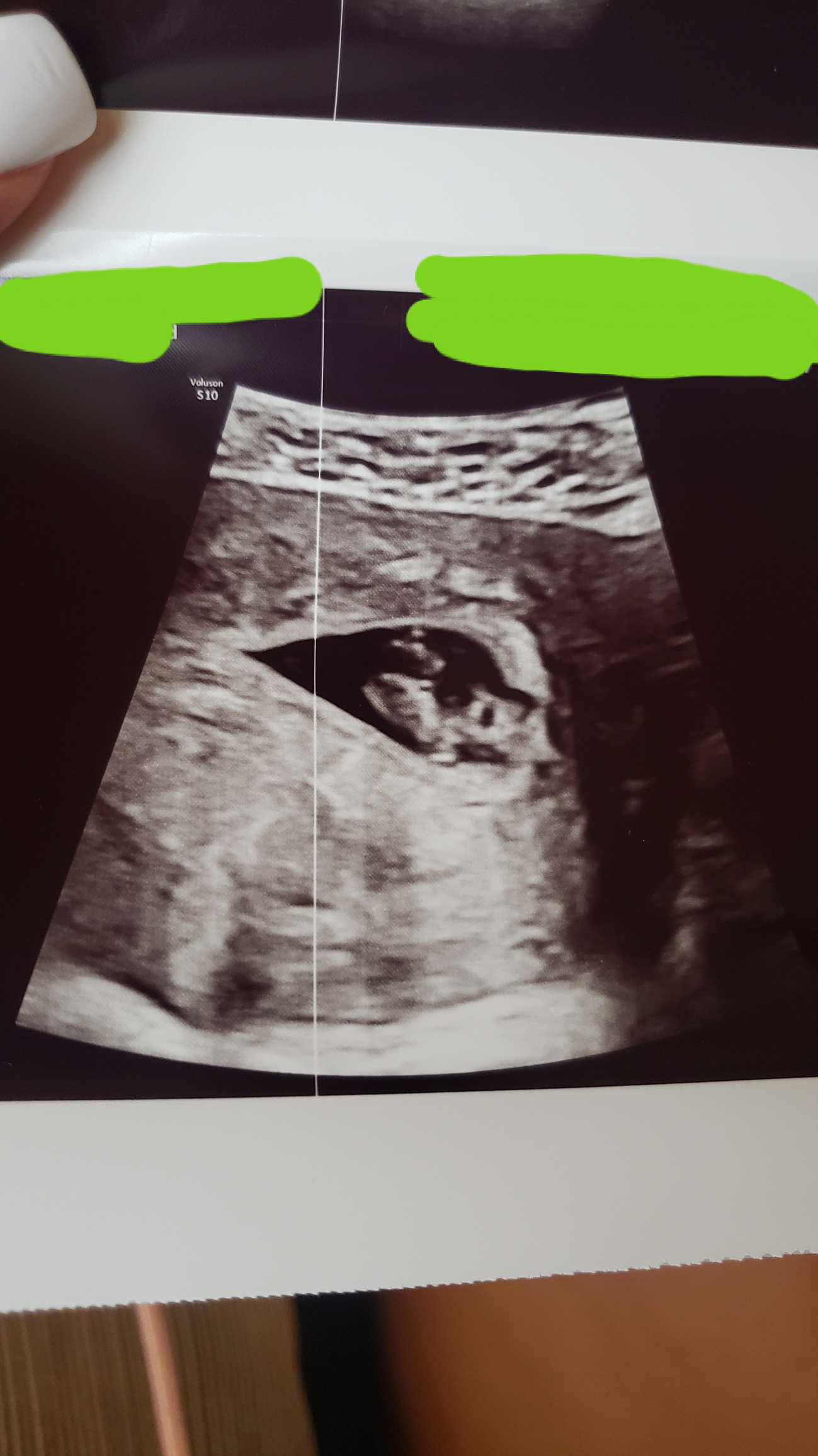 Can anyone help me out with my 8 week ultrasound pic (abdominal)? I've tried to figure this theory out but I don't understand what I'm looking at apart from the baby lol. I'm just curious how this works lol.