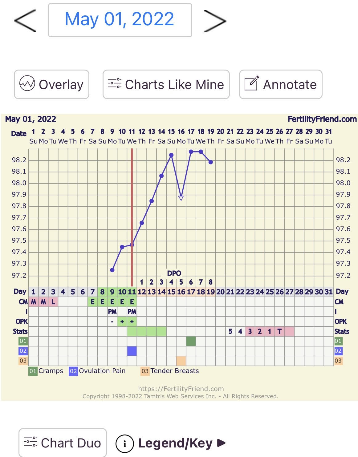 CS/Q: Temp dropped yesterday. I'm bloated, crampy, cranky - let's get the show on the road already!Month/Cycle: 3/2