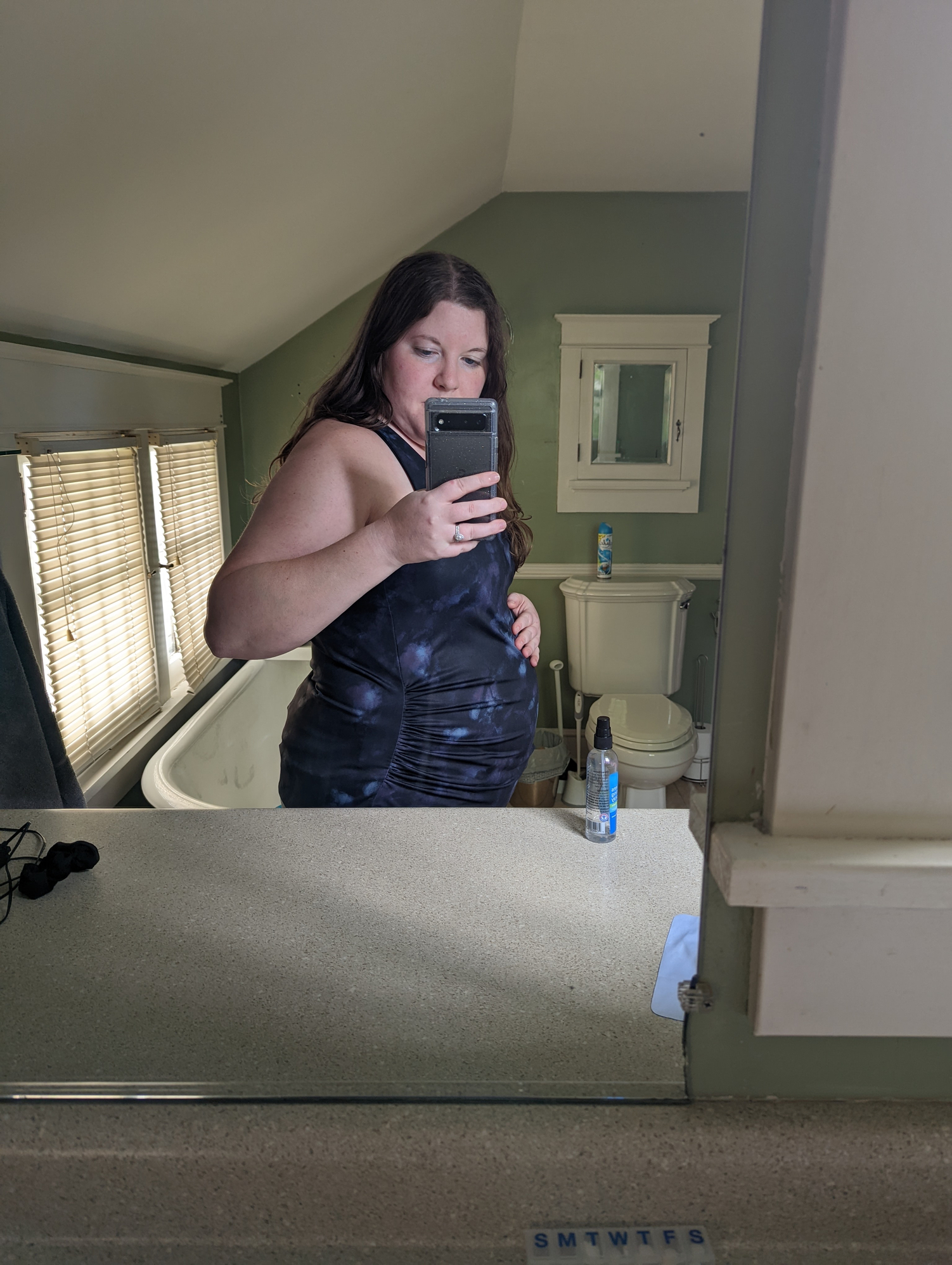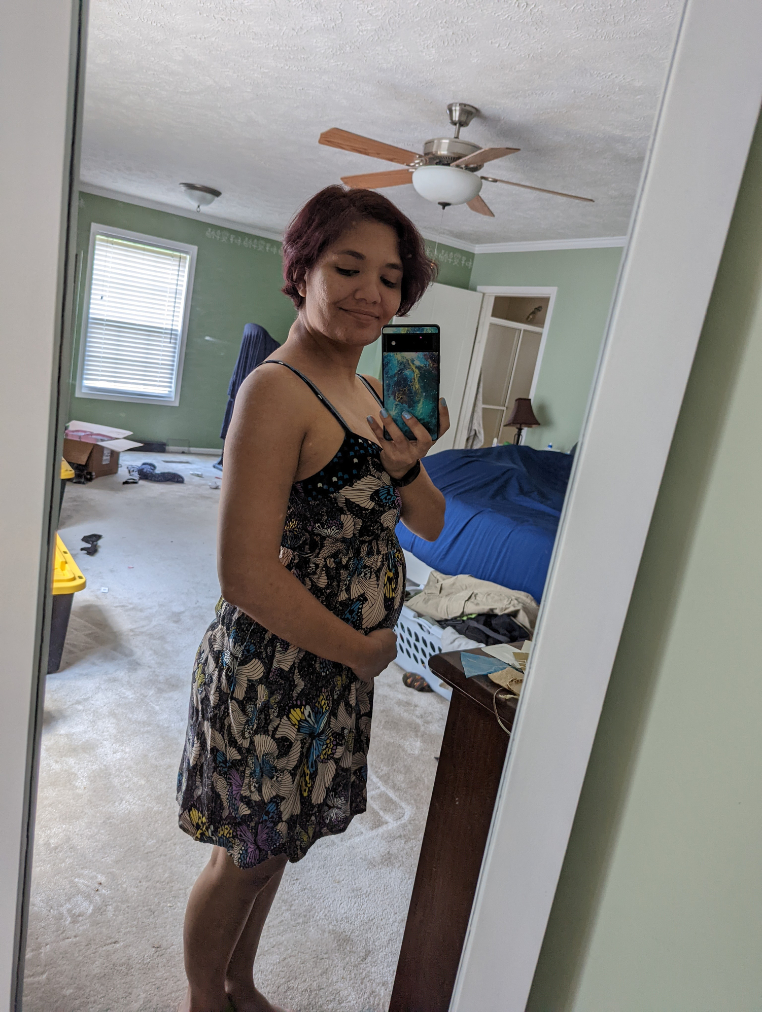 Here’s a not great photo trying to show it in a dress that I’m wearing to kinda hide it.