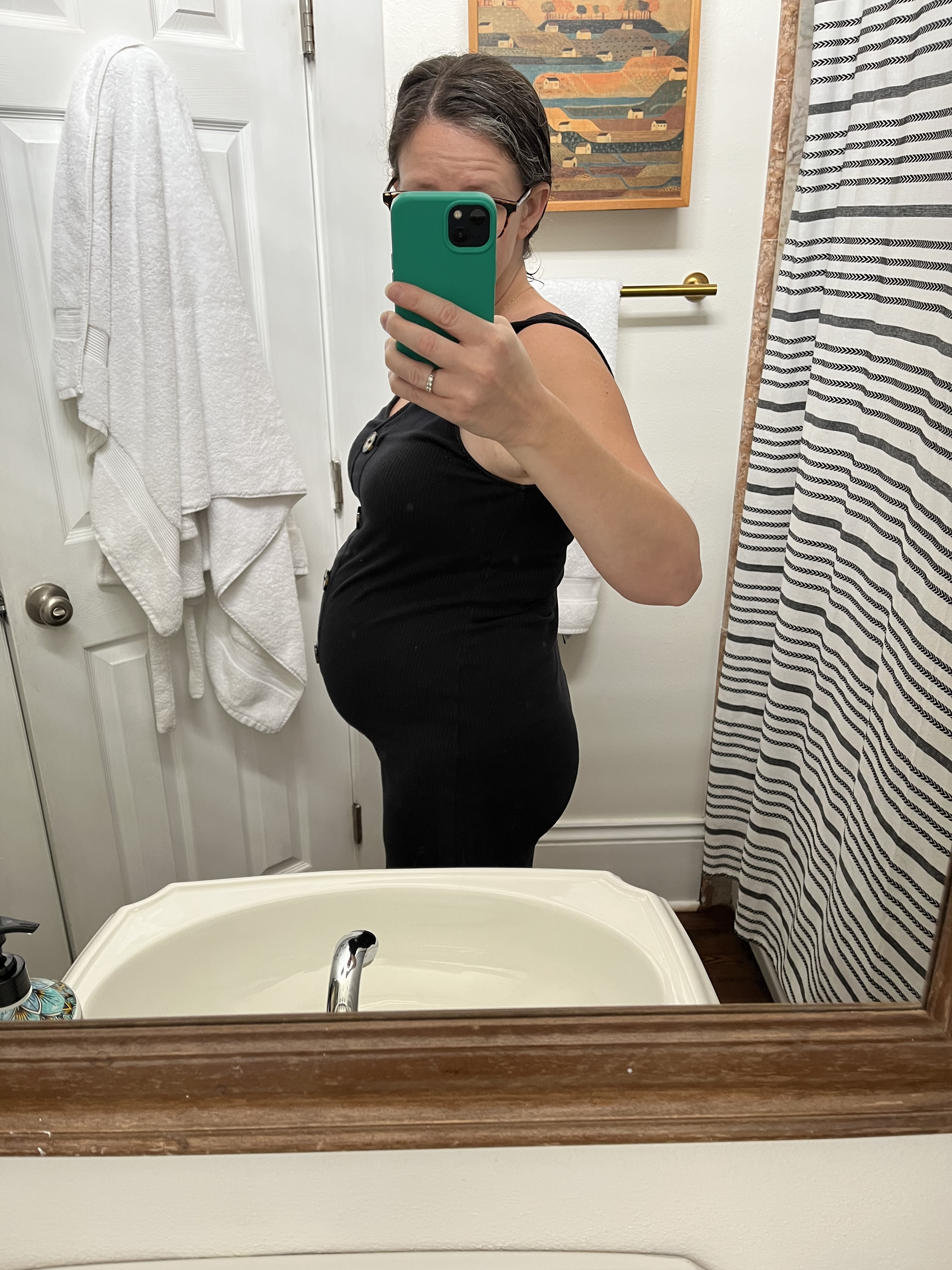 I’m super weird about sharing pics of myself publicly online but I like my bump today lol not hump day, but definitely “digging my bump” day. Ignore the dirty mirror 😳😬 23W3D