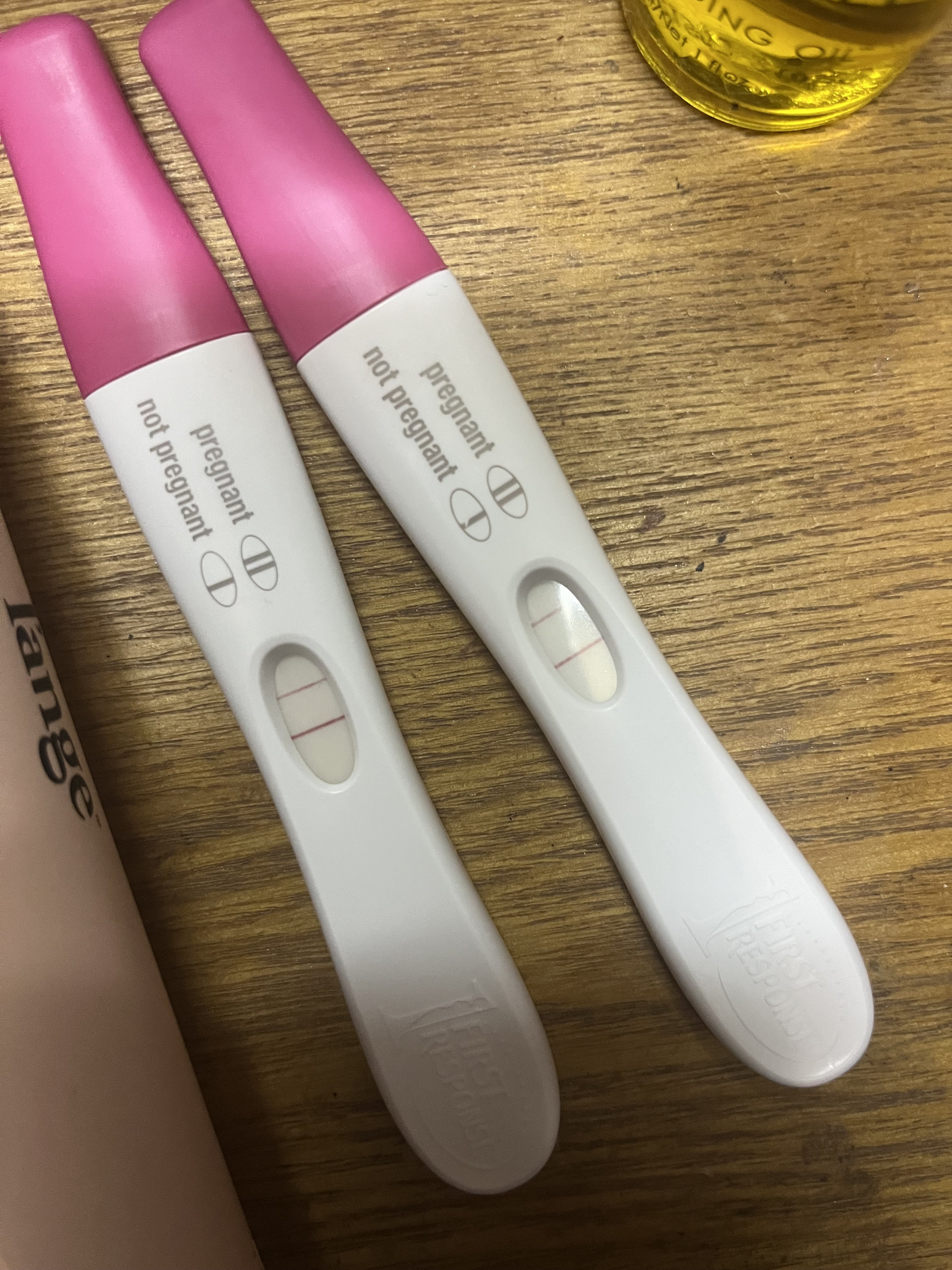 I used the pink dollar tree one first, and then took a FRER just because I had it at home already lol. This was 8 days late on my period so they were BFP! The second purple dollar store (dye stealer🥳) one was about a week later, just checking hcg progress! Now I’m about to be 12 weeks 🤰🏽
